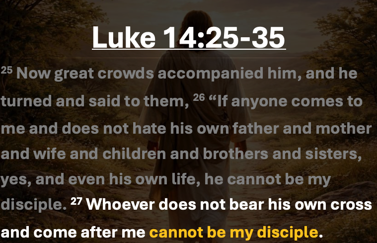 The lesson, dated February 25, 2026, from Garrett Bookout (minister at Oak Hollow church of Christ) continues a Discipleship series by examining **Luke 14:25-35**, focusing on the requirements and costs of true discipleship. Jesus addresses large crowds following Him, warning that genuine disciples must prioritize Him above family relationships (interpreted as loving others less in comparison), bear their cross through sacrifice, and renounce all possessions to follow Him fully. Through parables of building a tower and a king preparing for war, Jesus urges potential followers to deliberately count the cost of discipleship rather than impulsively commit without considering the sacrifices involved.FEB 25, 2026Discipleship - Lesson 6Garrett Bookout -